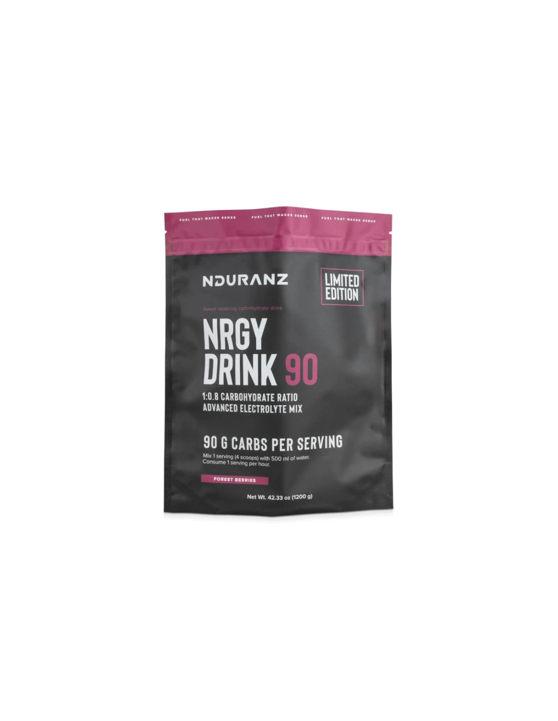 Nrgy Drink 90 est formulé selon le ratio de glucides de Nduranz, un ratio de 1:0,8 entre le glucose (maltodextrine) et le fructose.